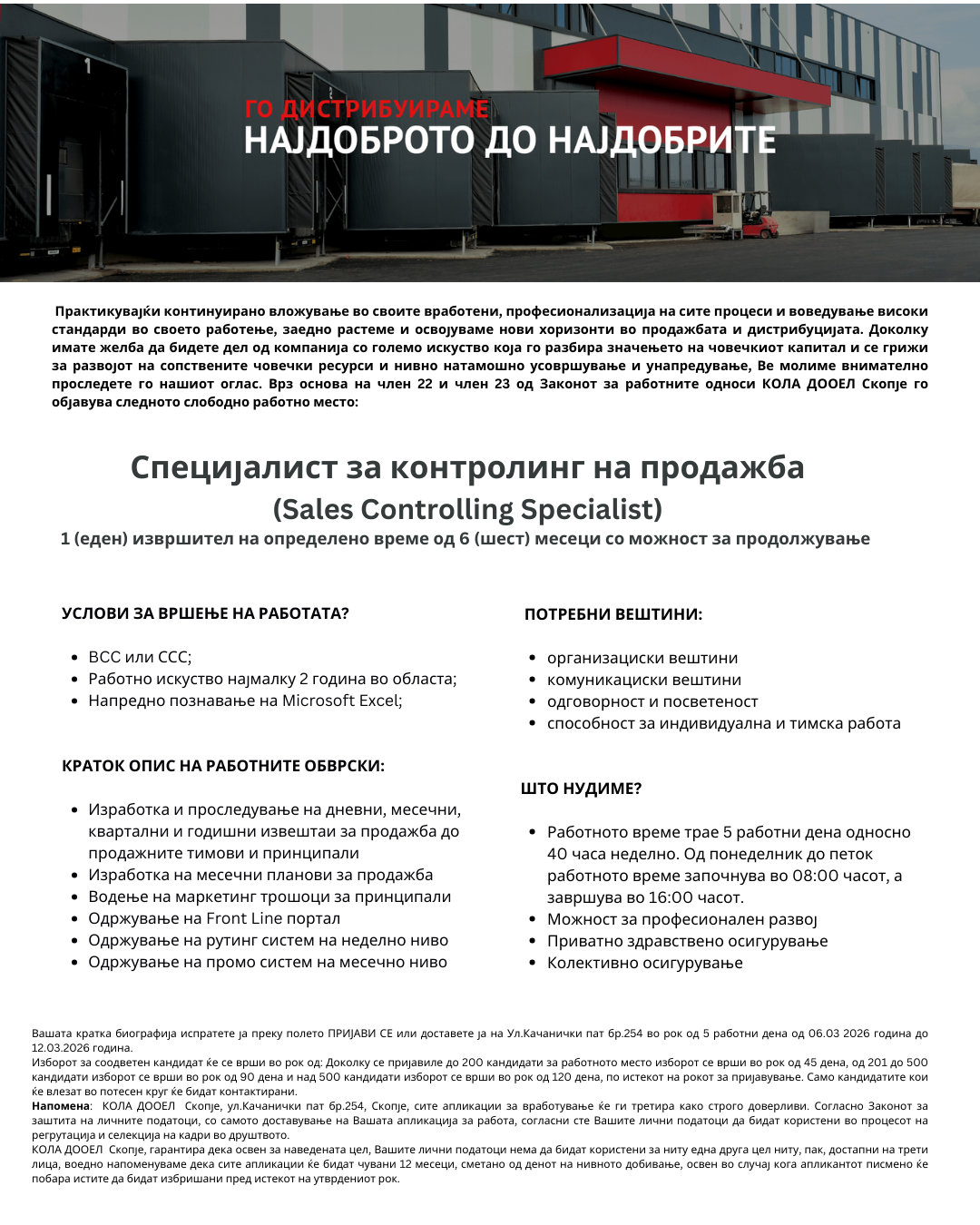Специјалист за контролинг на продажба (Sales Controling Specialist)